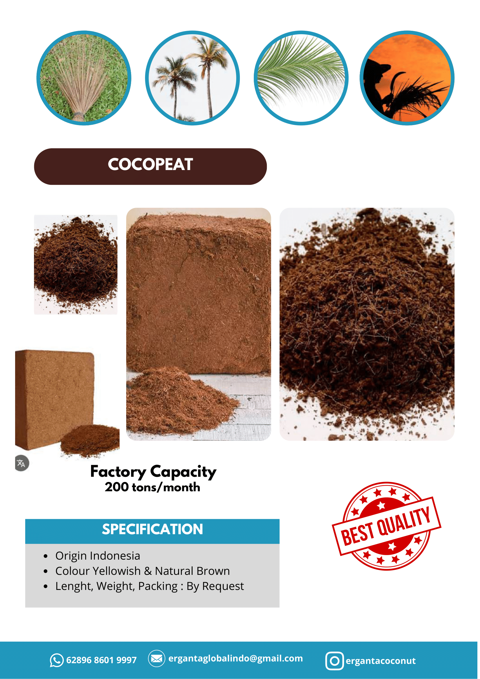 Cocopeat merupakan media tanam organik dari serbuk sabut kelapa yang memiliki daya serap air tinggi. Produk ini sangat ideal untuk hortikultura, pembibitan, dan pertanian modern.